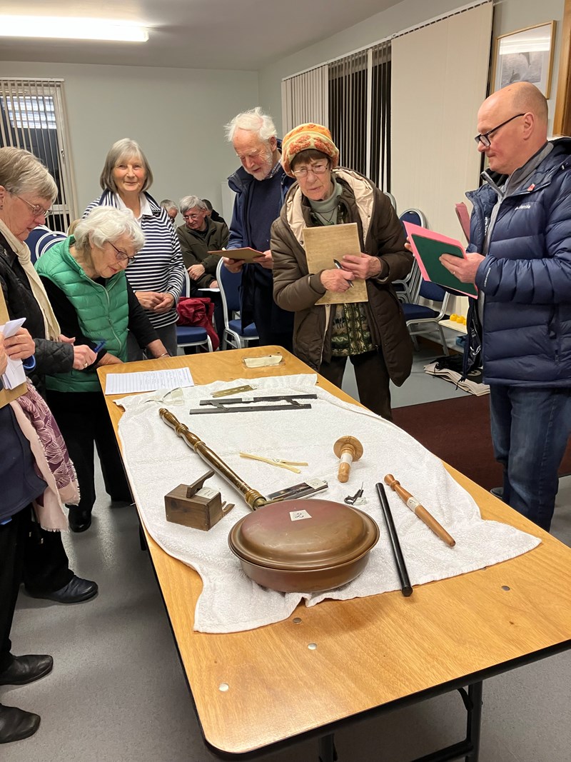 Rising to the occasion member Fred Fraser (assisted by Alasdair Cameron) produced a variety of objects of historical significance for members of the audience to identify. Not sure that there was an outright winner of this quiz but a lot of scratching of heads went on and much laughter was produced when the answers were read out. After all their hard work members enjoyed mince pies and cake as an early celebration of the coming Christmas festivities.